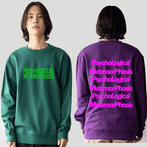 PLMPの定番PLMP LOGOを同色系のプリントで落とし込んだ裏毛のクルースウェット。