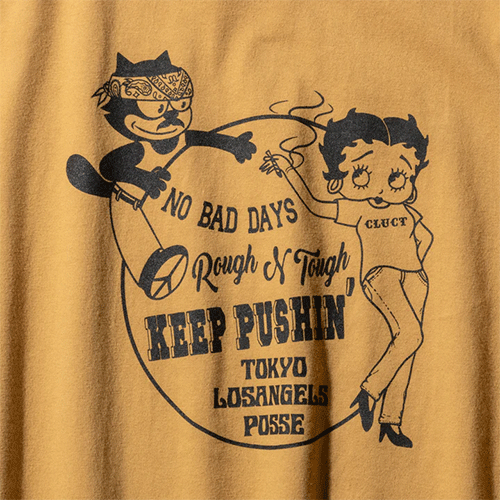 グラフィックメインのデザインがメインウェアからレイヤードスタイルのインナーまで幅広く活躍するマルチな1枚です。