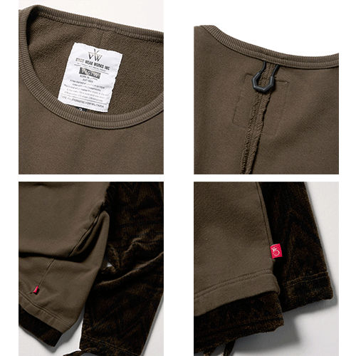 QUALITY : (メイン)COTTON 100% (リブ)COTTON 100% (柄)COTTON 75%, RAYON 25%