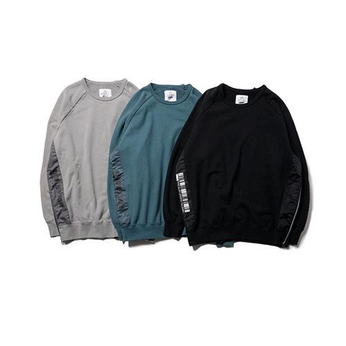 スウェット生地は染色時に出る汚水を出来るだけ抑えるように高音スチーム機で蒸しながら行う特殊な加工方法により環境に配慮された工法を使用したヘビーオンスな裏毛スエットを使用しています。