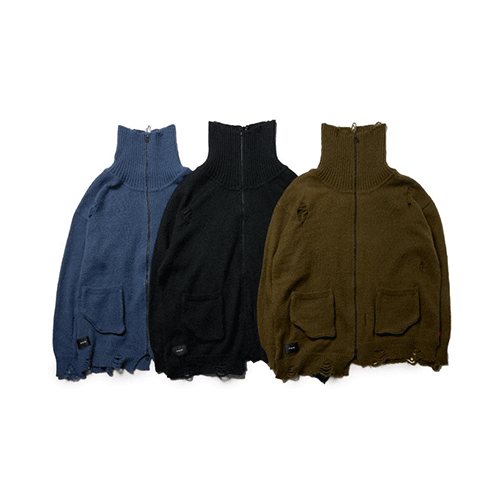 着やすいライト目なモヘアニットで本体のあちこちにダメージを加え、VIRGOらしさを表現。