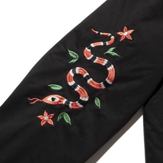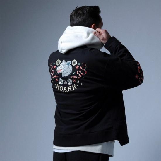 一着。インパクトのあるグラフィックを丁寧な刺繍で仕上げたボンバージャケットです。