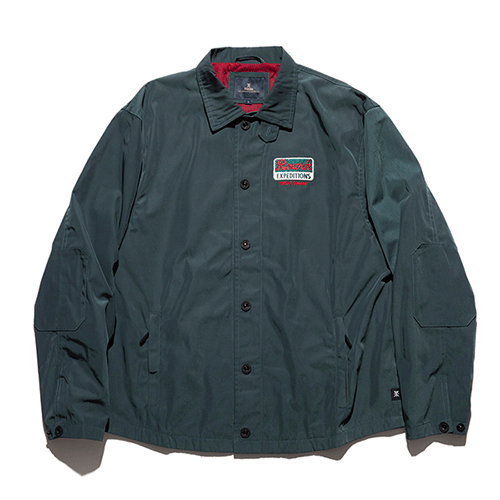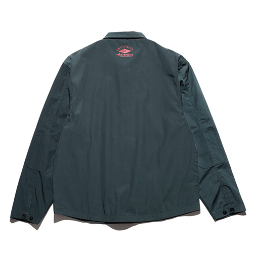 表地には適度なハリ感と艶感を持つポリエステル生地、裏地には通気性の高いメッシュでオリジナルボタンが特徴的な1枚。