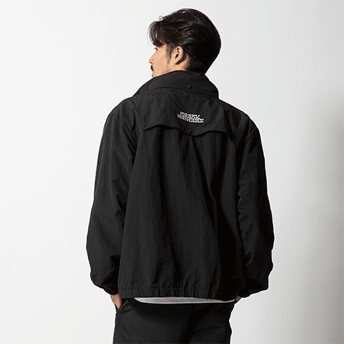 裾はドローコード仕様でシルエットの調整が可能。襟にはフードを収納できるので2WAYで着用できます。