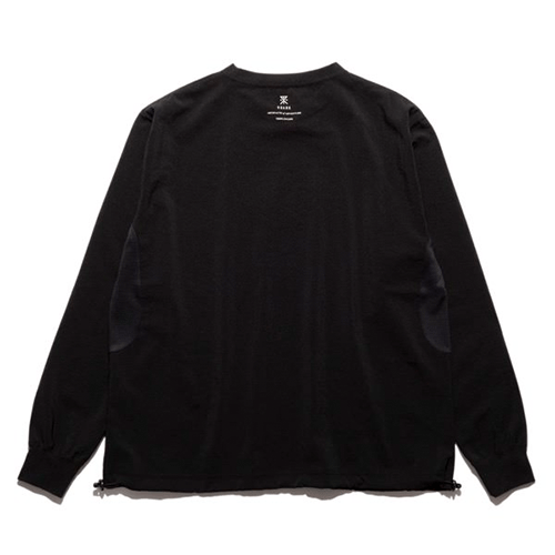 ボディには強撚シック&シンを仕様し、ヘンプライクでドライな質感を実現した清涼機能素材EVALET®のストレッチ生地を採用。サイドと袖口にはPolartec®POWER DRY™を使用し、袖から脇部分にパターンを入れることで高い通気性とスムーズな腕上げを実現しました。