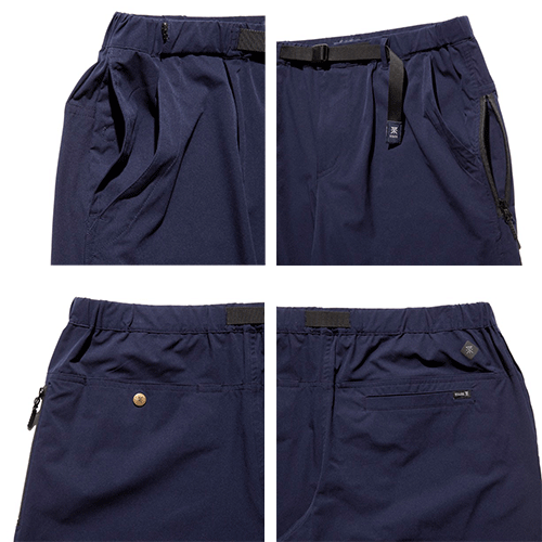 180度自然な開脚が可能なガゼットクロッチ、象徴的なバーティカルジップポケット、片手でも調整可能なベルトの仕様など高い機能性も併せ持ちます。