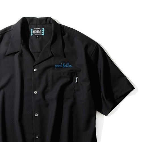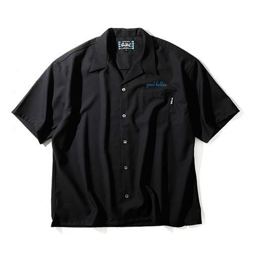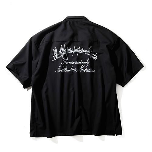 OPEN COLLAR LETTERING S/S SHIRT / BLACK