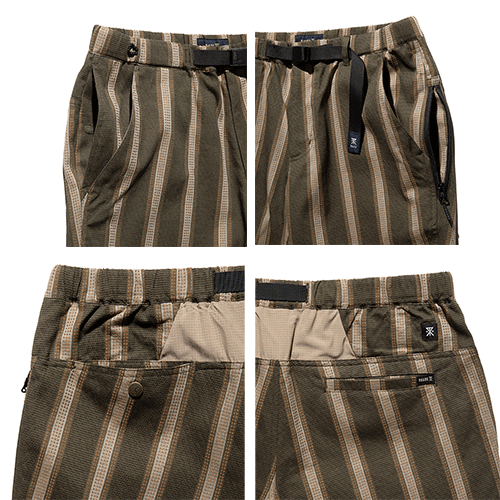 細かいディテールはTRAVELショーツの機能性を備えた、カジュアルでもパーティーでも使い分けのできる1着です。