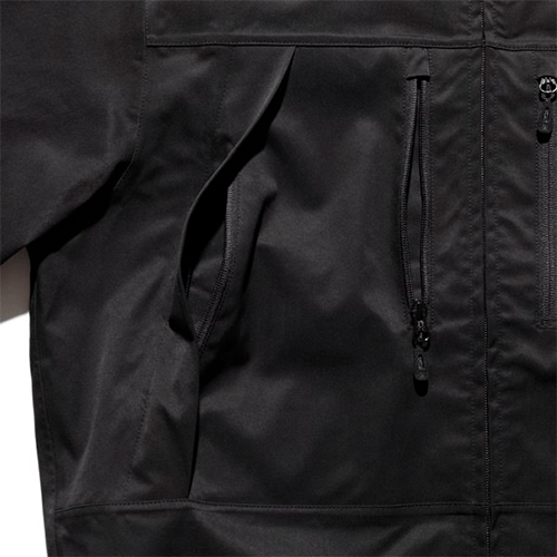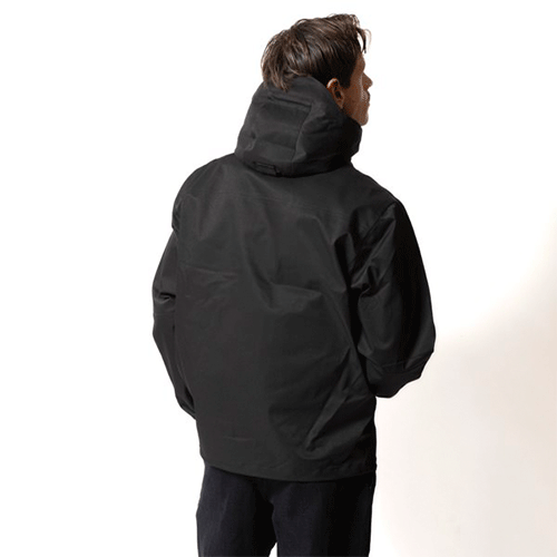 裾はドローコード仕様でシルエットの調整が可能、襟にはフードを収納でき2WAYで着用できます。